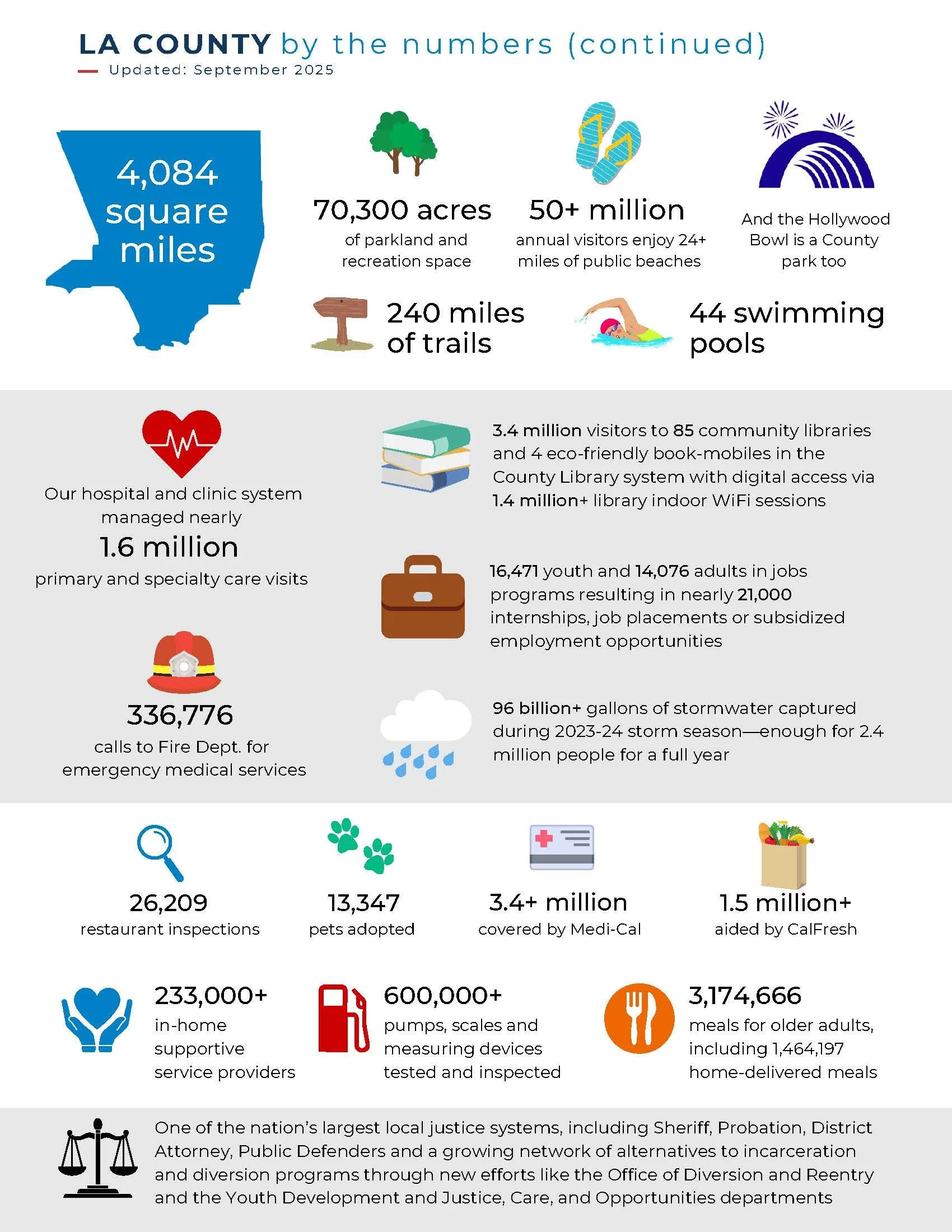 The other nearly 9.3 million residents live in 88 cities within the County, located throughout 4,084 square miles.